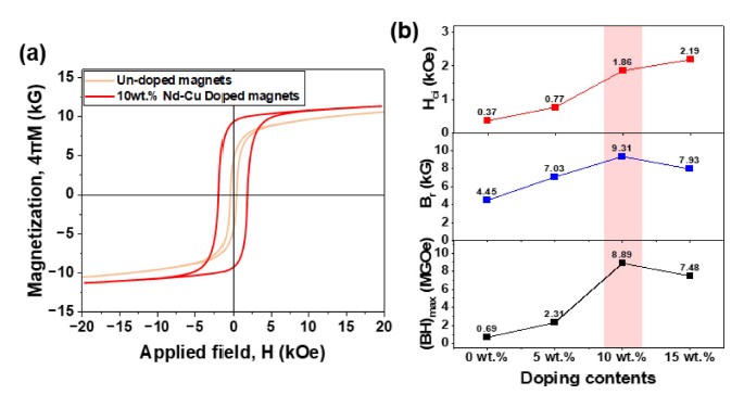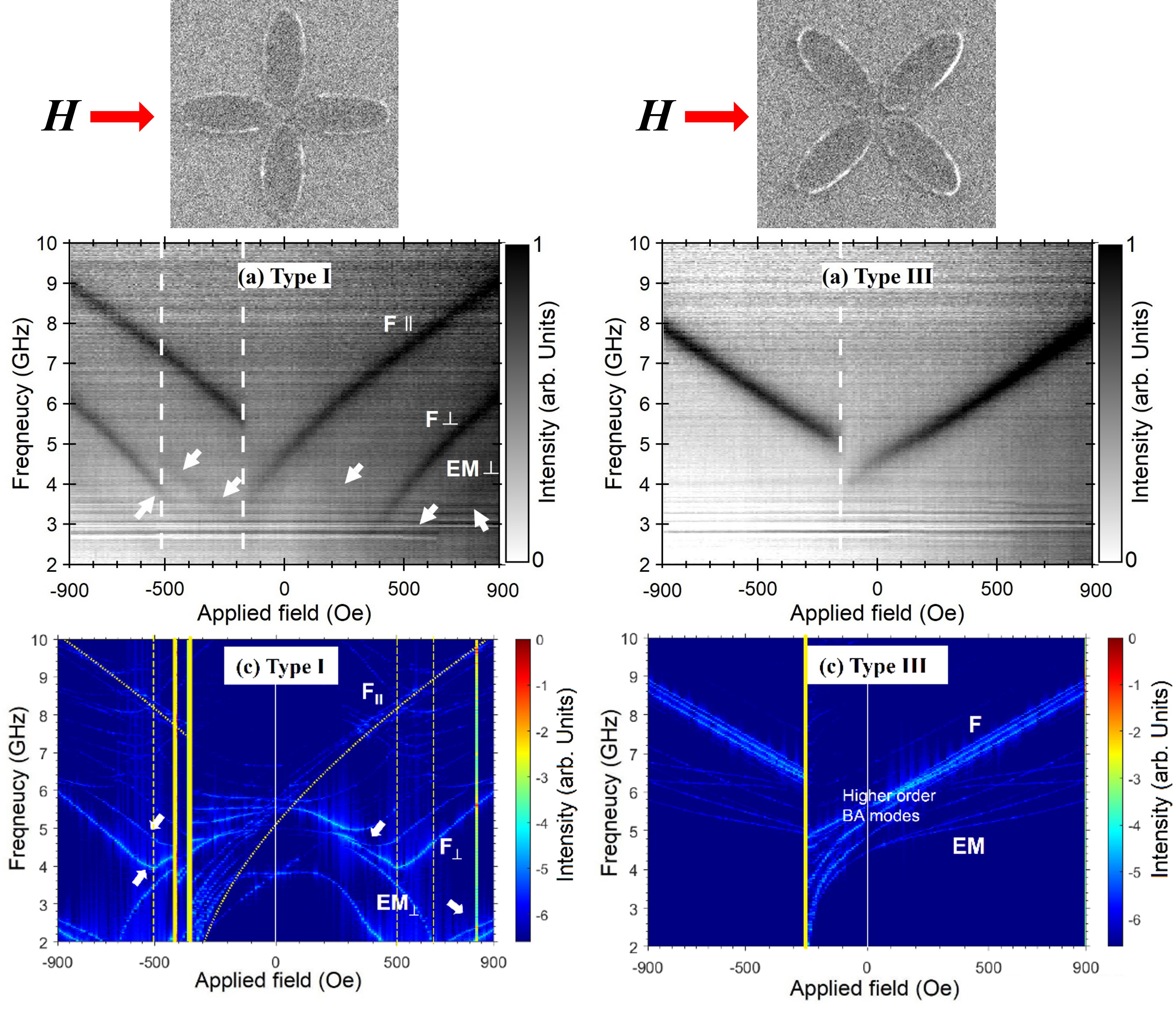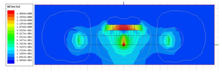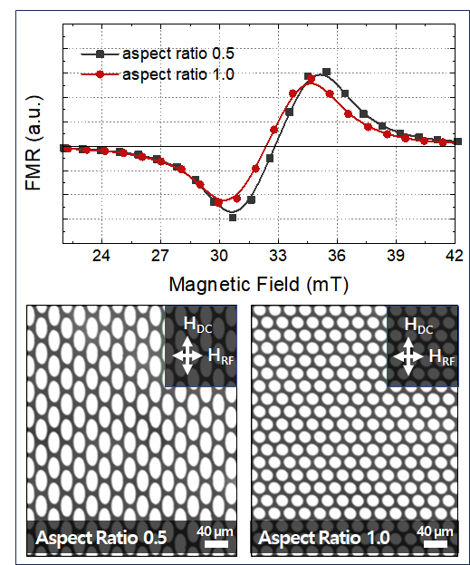 conditions: no field versus a transverse ~0.5 T field generated by Nd magnets; output reproducibility was